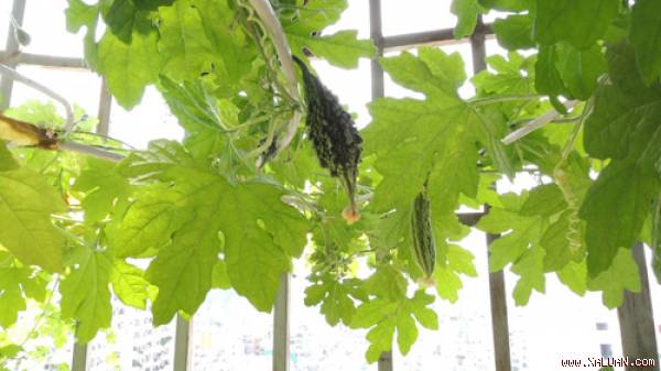 Nhà anh Quang có hai loại mướp đắng mọc lẫn với nhau.